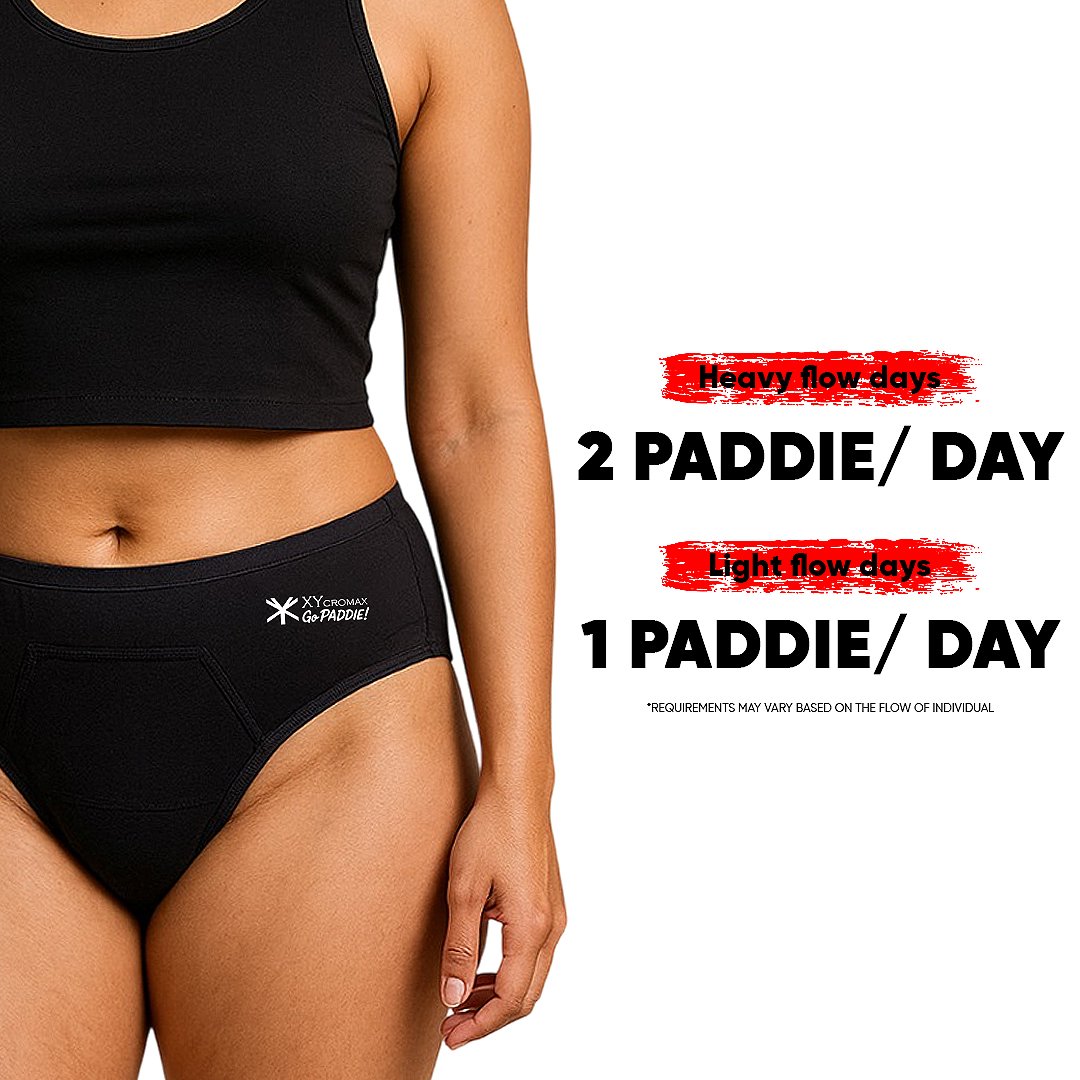 Go Paddie is a cotton panty with the power of 5 pads—the best reusable period panty. It is the comfy, eco-friendly alternative to disposable pads. Enjoy all-day leak protection with a soft, rash-free fit—so you can move, sleep, and live with confidence. GO Paddie is just a leakproof panty that can be used without pads and be leakproof.